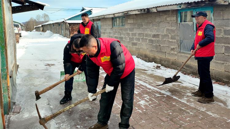 與此同時,暖心除雪組聚焦行動不便留守老人這一特殊群體,攜帶鐵鍬、掃帚等工具,奔赴老人住宅周邊開展積雪、結(jié)冰路面清理工作。黨員們不畏嚴(yán)寒、分工協(xié)作,掃浮雪、鏟堅冰、運積雪,鐵鍬與冰層碰撞的“叮當(dāng)”聲、掃帚清掃的“唰唰”聲交織成冬日里的暖心樂章。清理過程中,黨員們還主動走進老人家中,詢問其生活需求與身體狀況,叮囑老人雪天路滑盡量減少外出,有困難及時聯(lián)系支部,用貼心服務(wù)為老人撐起“安全傘”。
